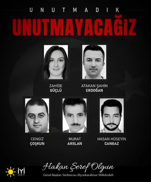 - Seçim ve Parlamento İlişkileri Başkanı ve Afyonkarahisar Milletvekili Av. Hakan Şeref Olgun, 23 Ekim 2024 tarihinde TUSAŞ'a düzenlenen terör saldırısına ilişkin bir mesaj yayımladı.